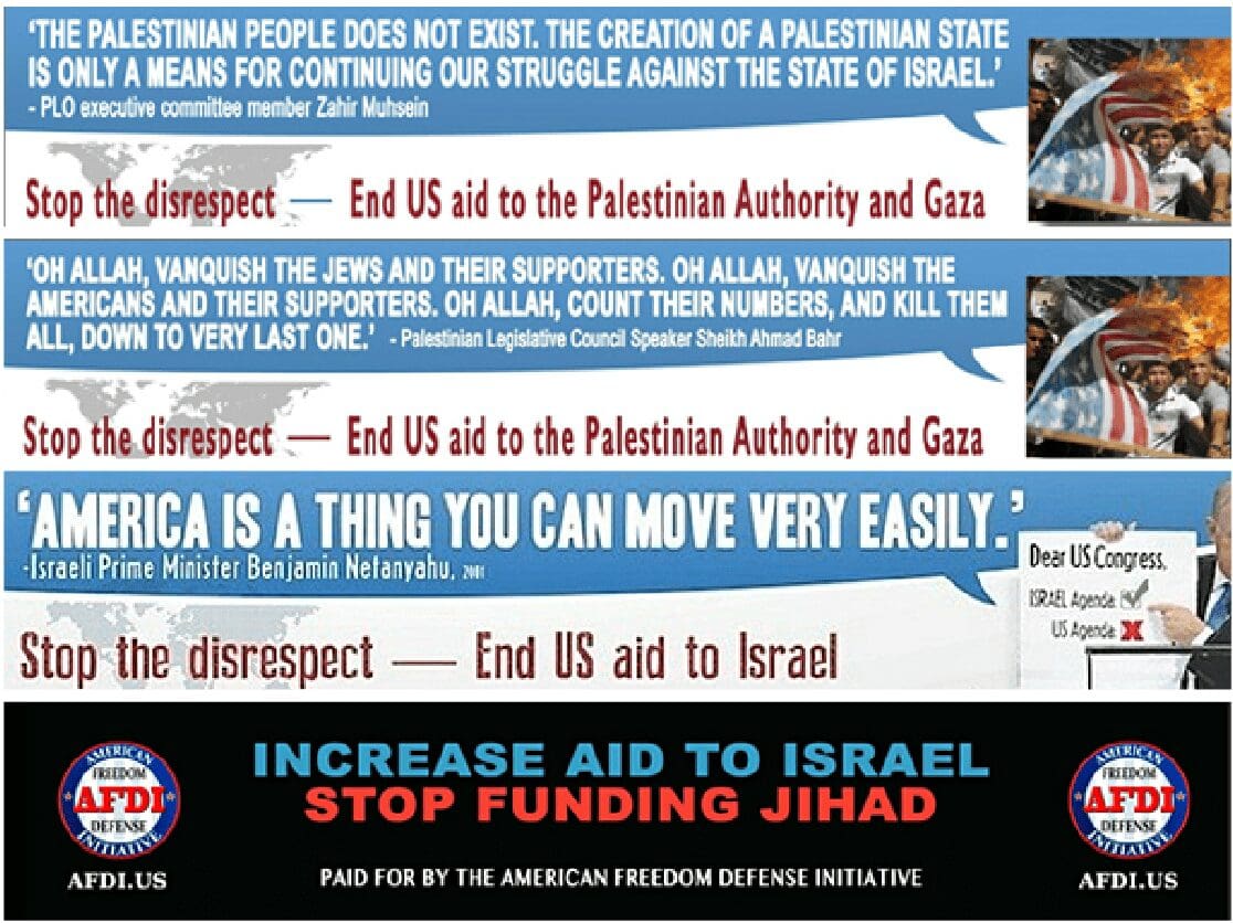 We’re also rolling out a new ad reading: “‘Oh Allah, vanquish the Jews and their supporters. Oh Allah, vanquish the Americans and their supporters. Oh Allah, count their numbers, and kill them all, down to the very last one.’ – Palestinian Legislative Council Speaker Sheikh Ahmad Bahr. Stop the disrespect – End US Aid to the Palestinian Authority and Gaza.”ADVERTISEMENT