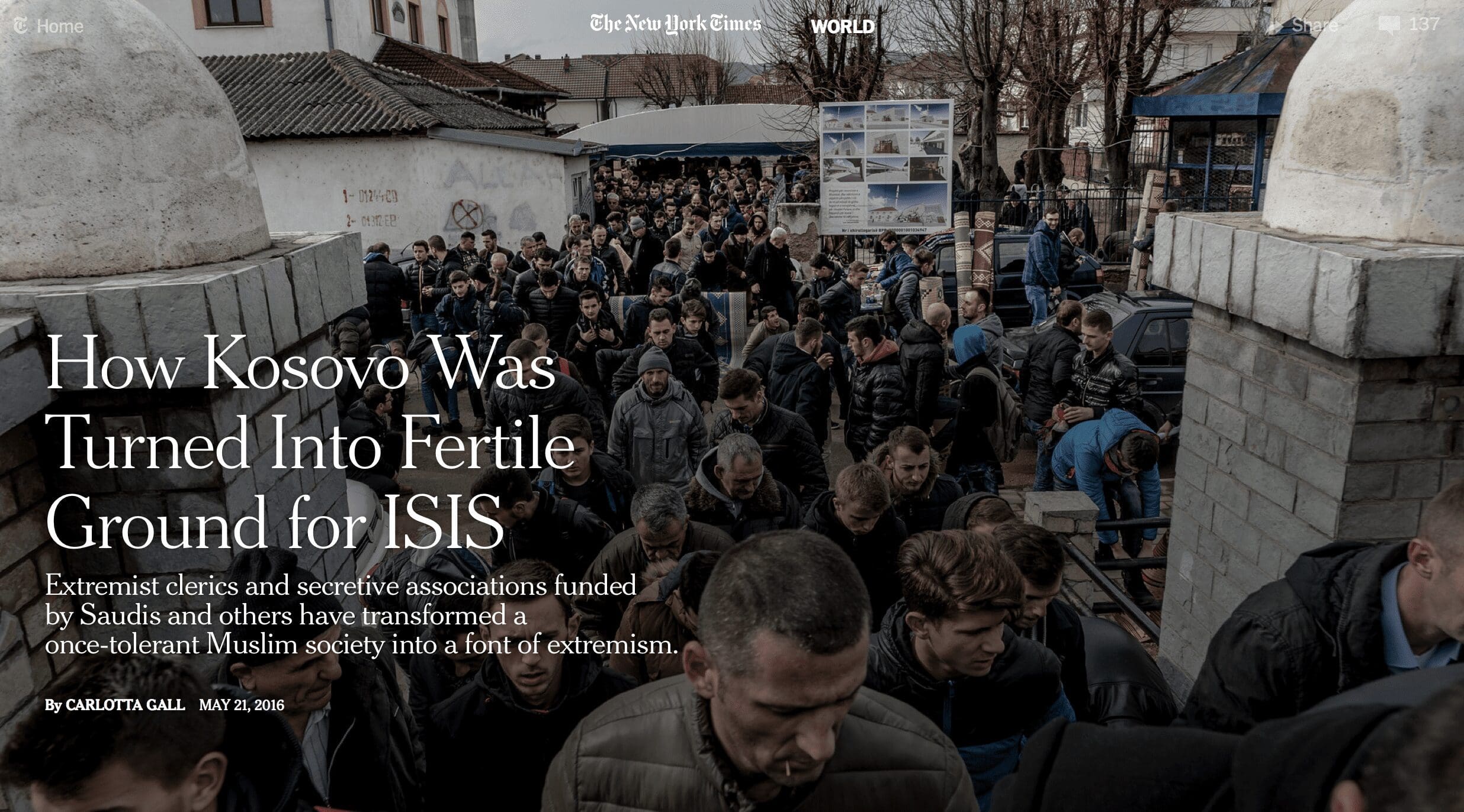Kosovo now has over 800 mosques, 240 of them built since the war and blamed for helping indoctrinate a new generation in Wahhabism. They are part of what moderate imams and officials here describe as a deliberate, long-term strategy by Saudi Arabia to reshape Islam in its image, not only in Kosovo but around the world.