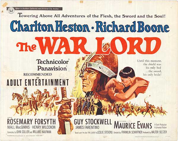 THE WAR LORD, screenplay by John Collier and Millard Kaufman, based on the play “The Lovers,” by Leslie Stevens; directed by Franklin Schaffner; produced by Walter Seltzer. A Court production, released by Universal Pictures. At neighborhood theaters. Running time: 130 minutes.