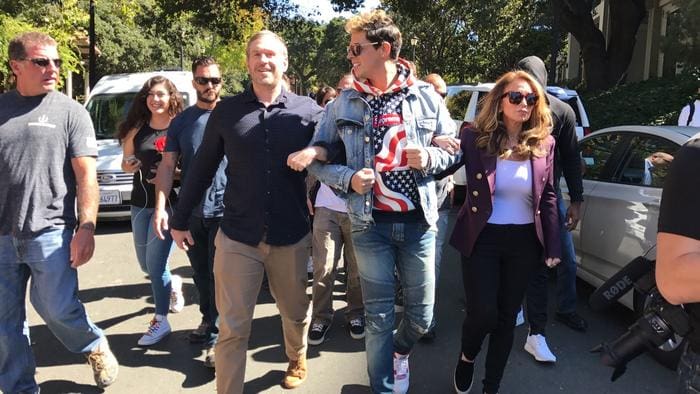 Milo Yiannopolous is greeted by dozens of counter-protesters on UC Berkeley campus