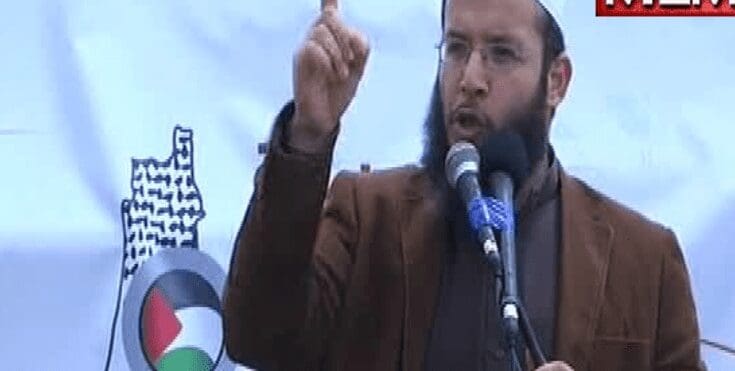 The Muslim preacher went on to talk about the “unjust and shameless infidels” who’ve occupied and stolen land from the “Palestinian” people.