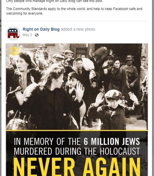 Apparently Posting About Jewish Holocaust Remembrance is Hate Speech on Facebook