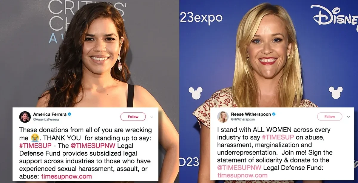 Witherspoon, in particular, heavily promoted the organization, telling Marie Claire magazine in 2018, “I’ve been working very hard on the initiative Time’s Up with more than 400 women in my industry. We are raising money for women in a variety of workplaces to have better resources for on-the-job-harassment lawsuits. We are trying to level the playing field for all women and men who have suffered from discrimination, harassment and abuse.”