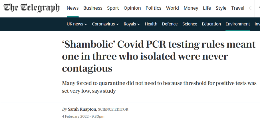 The figures also show that between 23% and 37% of people who were told they were positive had a cycle threshold value above 30. For one in 20, it was higher than 40.ADVERTISEMENTDr Tom Jefferson, co-author and an epidemiologist at the Centre for Evidence-Based Medicine at the University of Oxford, said: “We found that about one-third of people who isolated probably didn’t need to. PCR positivity means that you can tell people to isolate and ruin their lives basically, even though in a large proportion of these cases, they are not infectious. It’s absolute chaos. The whole regulation of these tests seems to be shambolic.” …