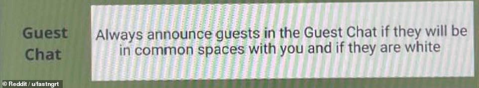 ADVERTISEMENTA list of house rules revealed that occupants were told ‘many POC moved here to be able to avoid white violence and presence, so respect their decision of avoidance if you bring white guests.’
