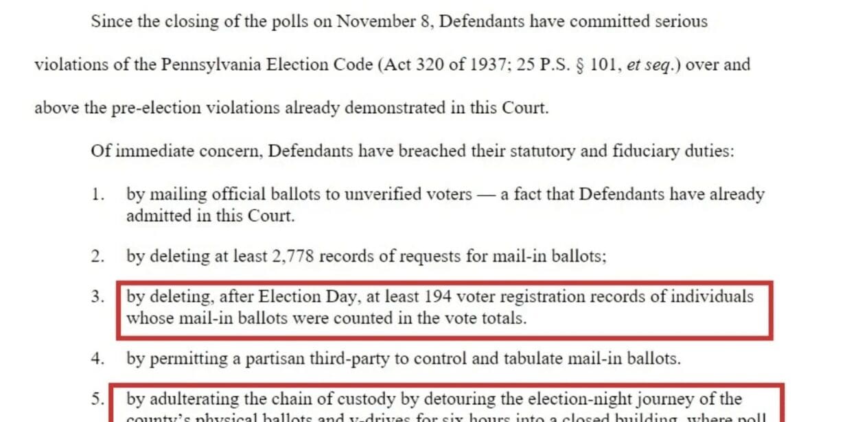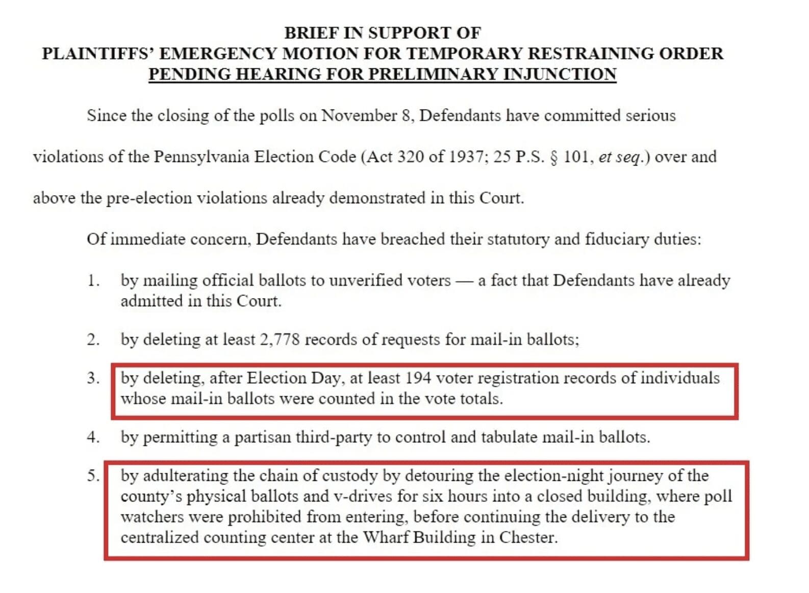 PA Voters File Lawsuit to Delay Certification After Officials Detoured from Counting Center into a Closed Building for 6 Hours on Election Day
