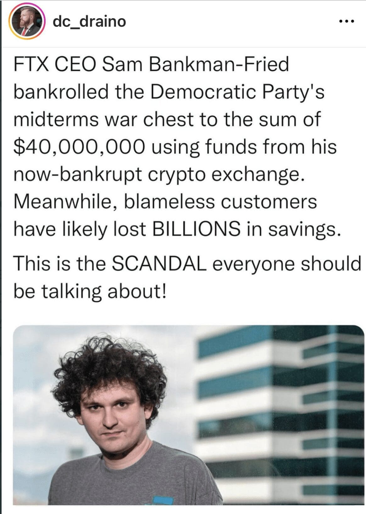 FTX was money laundering for the Democrats. US tax dollars went to Ukraine in the form of military and humanitarian aid. Ukraine partnered with FTX and invested heavily. The Founder/CEO of FTX was the second largest donor to Democrat Party, PACs and candidates, second only to Soros.