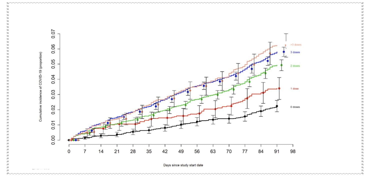 THE RISK OF COVID-19 INFECTION INCREASES WITH THE NUMBER OF DOSES