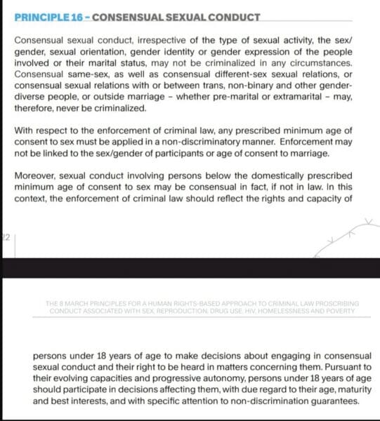 It also advises lawyers, judges and law enforcement to consider “the rights and capacity of persons under 18 years of age to make decisions about engaging in consensual sexual conduct and their right to be heard in matters concerning them” when considering enforcement of laws about sex with minors.