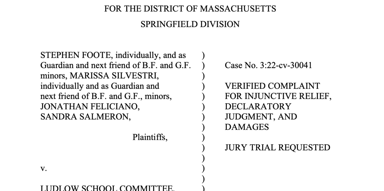 Stephen Foote and Marissa Silvestri’s 11-year-old daughter was a sixth-grade student at the Baird Middle School in Ludlow, MA, during the 2020-2021 school year when her parents say they learned she identified as “genderqueer.”