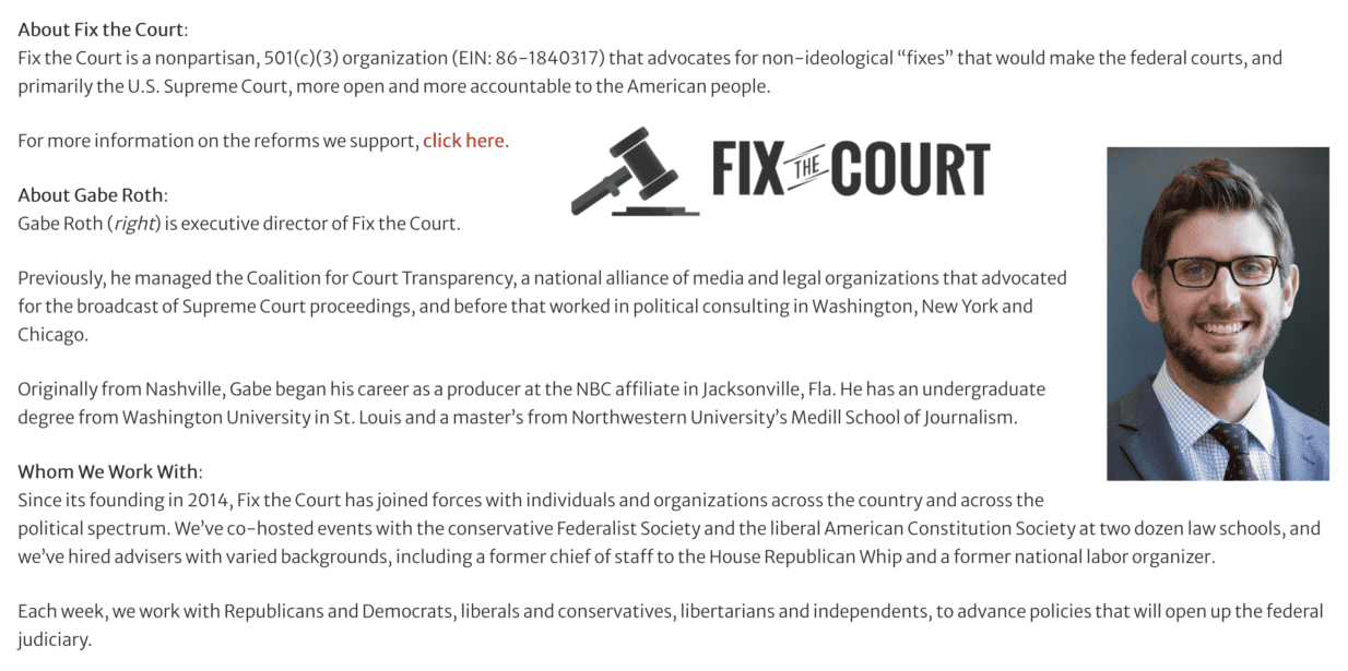 “Fix the Court” a euphemistically named dirt-digging smear hate group. These subversive far left groups are enormously funded while pro-American, pro-freedom organizations (like AFDI) are starved to death.