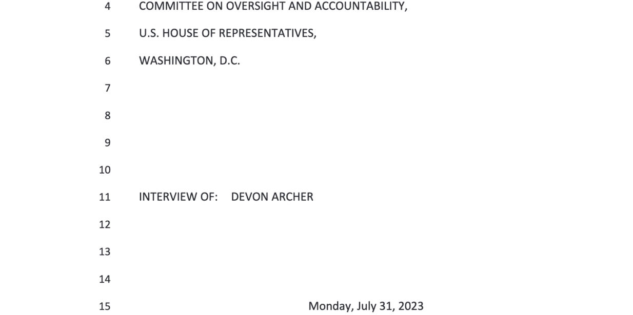 The transcript of Hunter Biden’s business associate Devon Archer’s congressional testimony was released Thursday.
