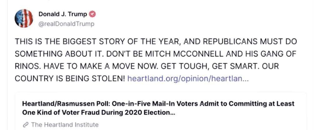 One in five voters who cast mail-in ballots during the 2020 presidential election admit to participating in at least one kind of voter fraud, according to a new poll conducted by Rasmussen Reports and the Heartland Institute.