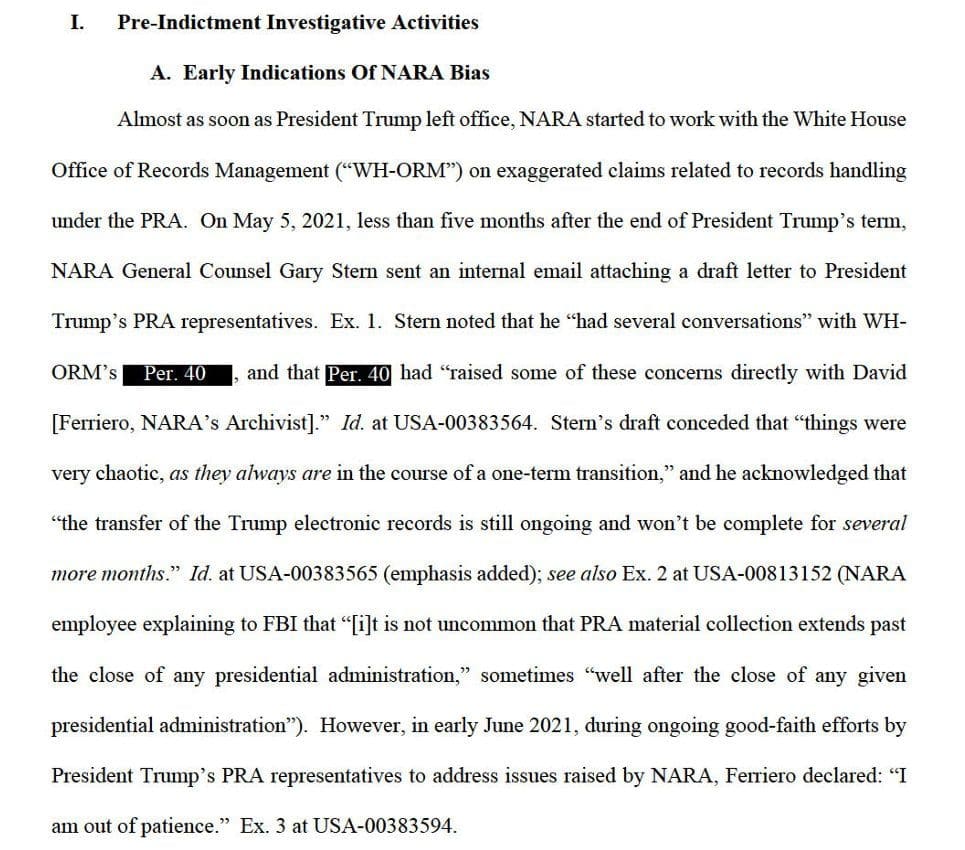 Before with redactions: Jack Smith wanted to hide the fact that the National Archives had several conversations with the Biden White House.
