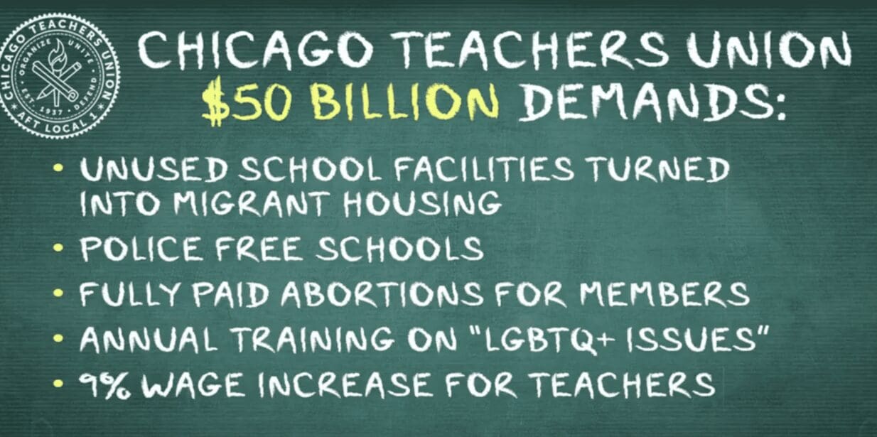 “This is just par for the course for them. They are not pushing things that are best for students,” Illinois Policy Institute Director Mailee Smith said on Monday. “They are pushing things that are best for their leaders’ political agenda. Other things that we see are climate justice demands, social justice demands, $2,000 per student for asylum seekers, they want housing for new teachers.”
