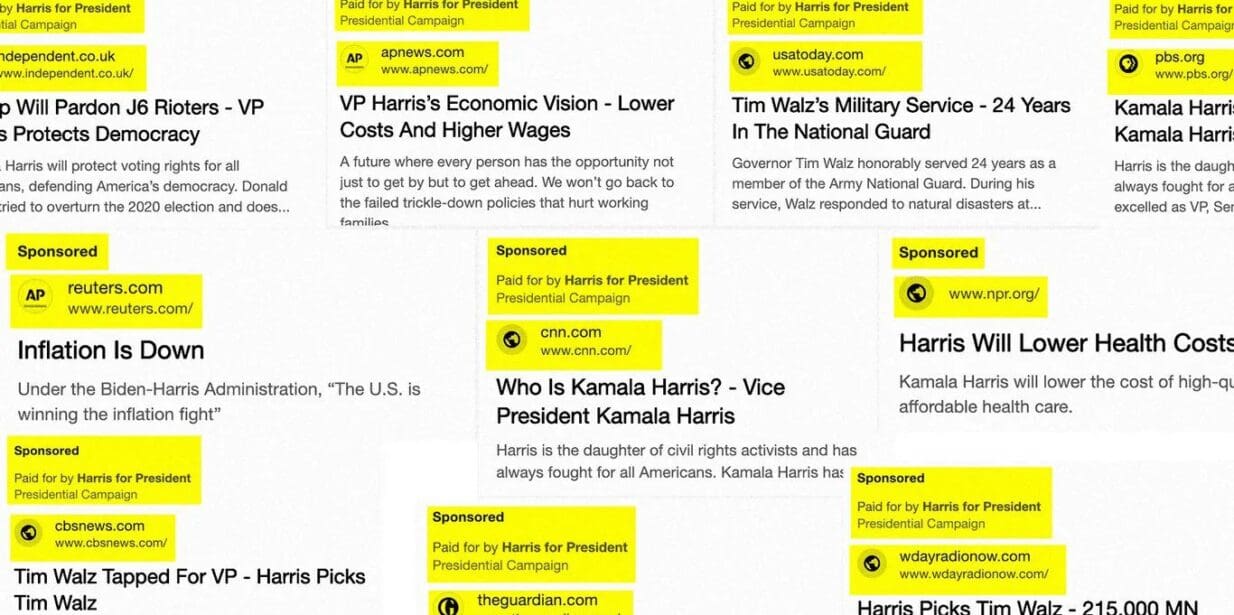 Spokespeople from the affected companies like CNN, USA Today and NPR — all of which have published flattering content about Harris in recent weeks — said they had no idea the companies were tied up in the campaign.