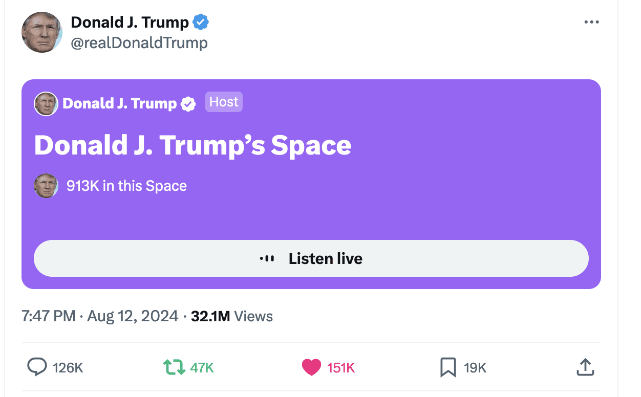 — Donald J. Trump (@realDonaldTrump) August 12, 2024