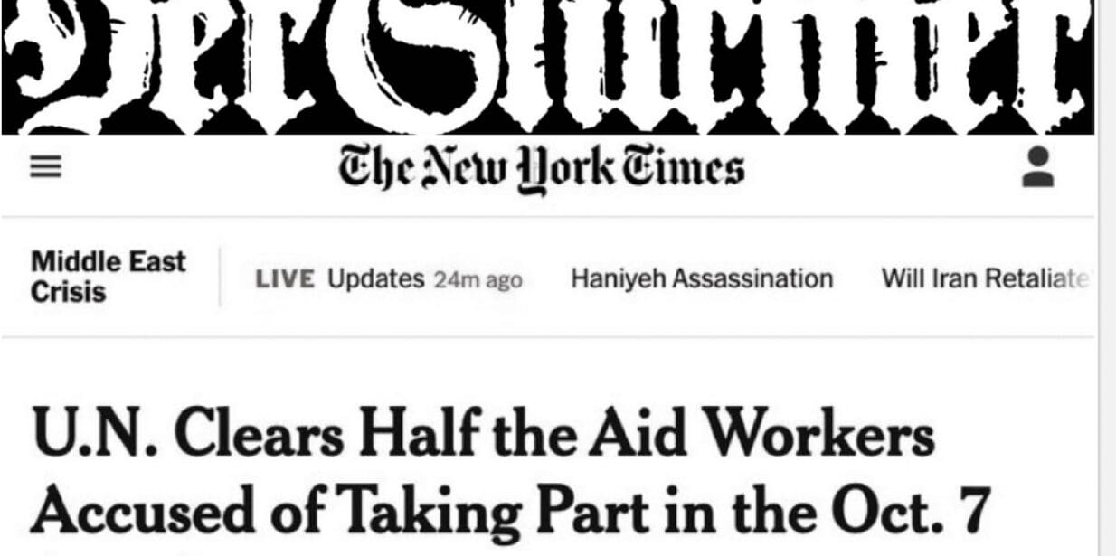 The UN has admitted that @UNRWA staff participated in the Oct 7 massacre and this is the shameful headline that the Times musters. pic.twitter.com/szDSIWN9TO