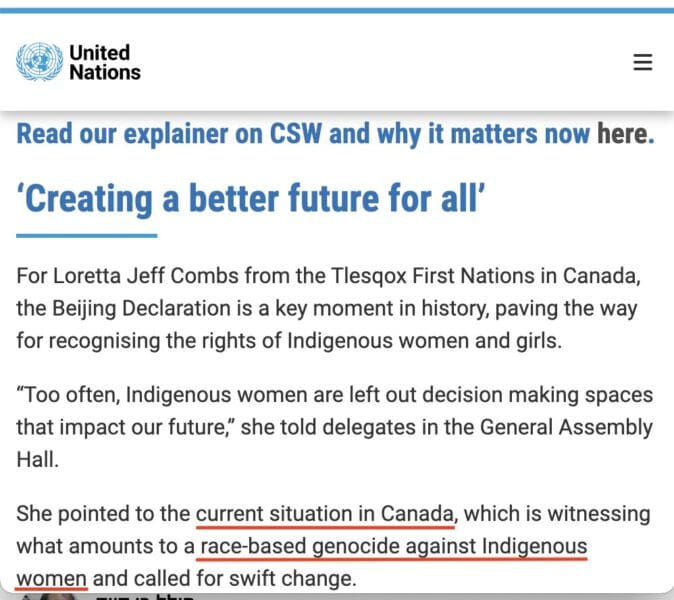 Under Saudi leadership of the 69th session of the UN Commission on the Status of Women, which runs March 10-21, we learn importantly that the government of Canada is committing “a race-based genocide against Indigenous women.”