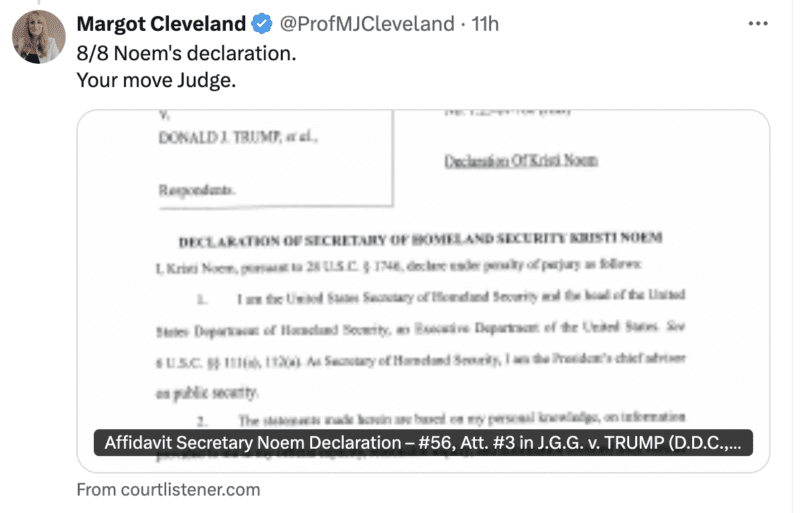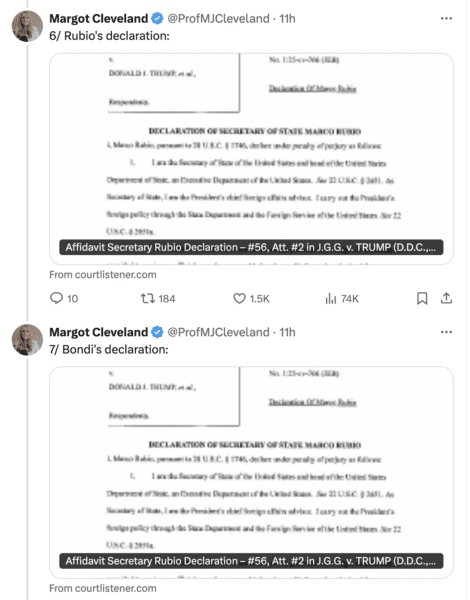 Pam Bondi, Marco Rubio, and Kristy Noem signed declarations in support of invocation of state secret privilege to deny Boasberg’s demand for details on Venezuelan terror flights.
