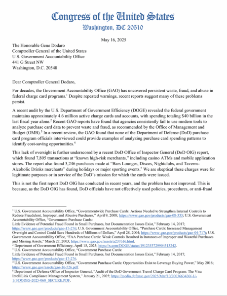 💸😡 The DOD IG found nearly 8,000 HIGH-RISK transactions on government-issued credit cards. We are calling on GAO to provide a full audit of high-risk transactions, including:
