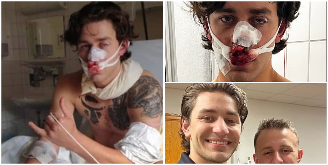 John Rudat, 21, was stabbed multiple times and left bloodied and battered after trying to stop two victims from being violently assaulted on German public transit in the city of Dresden on Sunday.