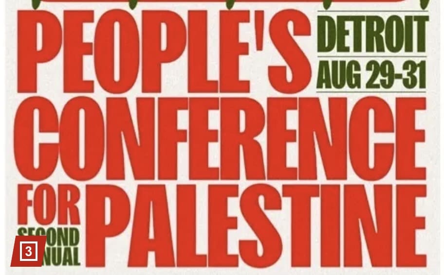 The conference will be held August 29-31 in Detroit: This annual People’s Conference for Palestine is organized by Palestinian leaders in the movement, with a political program designed to address the current political moment and to bring together critical voices in the struggle. With Gaza as our guide, people from across North America will come together for a weekend to continue building and strengthening the movement for Palestinian liberation in North America (People’s Conference).