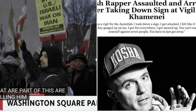 “A Jewish rapper got beaten bloody at a Khamenei vigil in Washington Square Park. What happened next exposed something much bigger: a documented pipeline connecting Iran’s sanctioned state TV directly to far-left protest organizers on American soil.