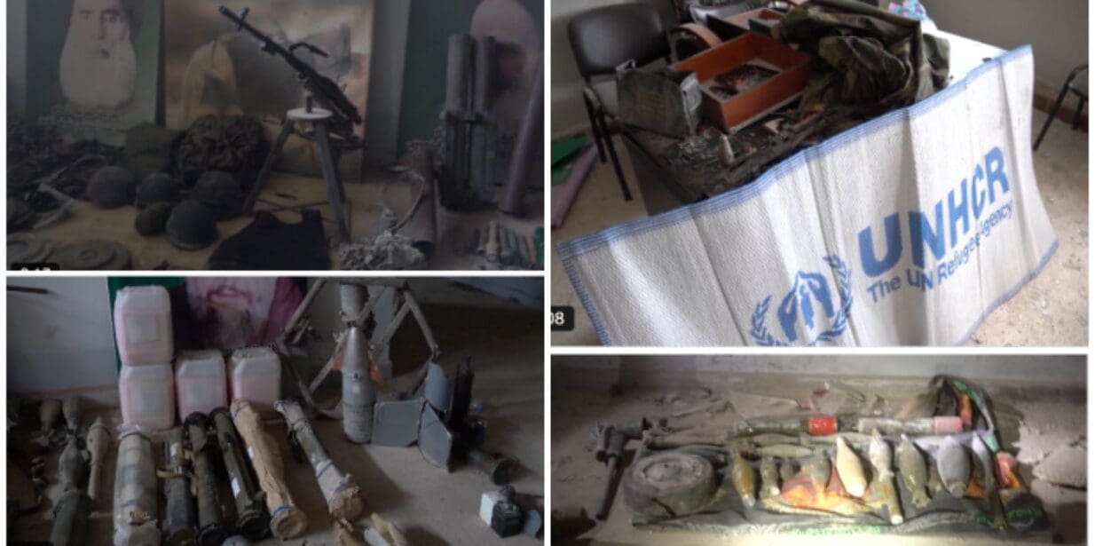 Alongside the weapons were items bearing the UNHCR logo.