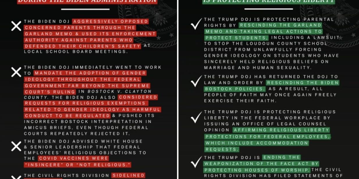 The Biden administration systematically discriminated against Christians across federal agencies, policies, and enforcement actions, prioritizing its positions on abortion, gender identity, and sexuality over religious liberty. Biden’s federal bodies like the DOJ, FBI, IRS, and Department of Education targeted or penalized Christians and Christian institutions through prosecutions, investigations, fines, and denial of benefits, while also restricting religious expression and accommodations—especially during COVID-era vaccine mandates. The repost further reveals that policies limited Christians’ ability to live out their beliefs in areas like healthcare, education, and family life, framing this as a broader pattern of government “weaponization” against religious viewpoints. It concludes that these actions not only harmed Christians but threatened religious freedom more broadly, and outlines steps to reverse those policies and reinforce constitutional protections.