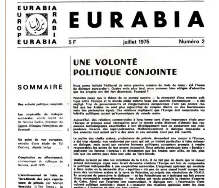 ADVERTISEMENTJust below is a screenshot of the cover from a 1975 edition of the publication, “Eurabia.”