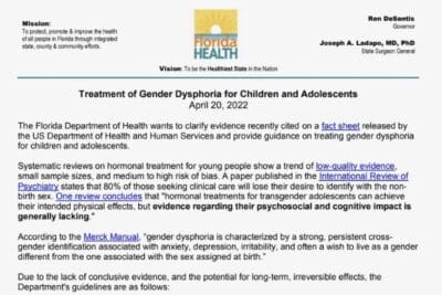 The great state of Florida Department of Health just issued very clear guidelines against transitioning of children with hormones or surgery.