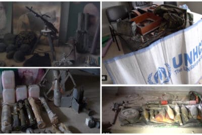 IDF troops found anti-tank rockets, mortar shells, grenades, launchers, light firearms, explosives and more with UN markings.