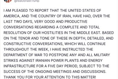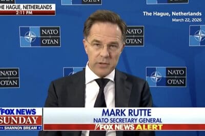 Winning. NATO Secretary General Mark Rutte said that 22 countries, including NATO members along with allies such as South Korea, Japan, Australia, New Zealand, UAE, Bahrain, are coming together to “implement Trump’s vision” coordinating efforts to reopen navigation through the Strait of Hormuz.