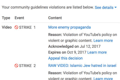 Here we go. In the past week, many of my videos have been removed from YouTube. YouTube is purging videos en masse under the guise of “hate speech” or “controversial religious or supremacist content.” They claim it’s to counter terrorism, when, in fact, it’s to silence those who dissent.