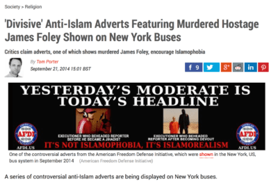 AFDI’s bold new ads are rolling — check out the guy checking out the ad. Bingo. Our new ad campaign is designed to show the absurdity of the mainstream media focus on “Islamophobia” amid growing jihad violence worldwide. The charge of “Islamophobia” is used to intimidate people into thinking there is something wrong with opposing…