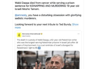 The march of hatred was led by the infamous Nerdeen Kiswani, who leads the condemned Within Our Lifetime group. Kiswani was recently arrested for inciting a fired-up mob, including some brandishing terrorist Hezbollah banners, to storm through Manhattan and over into Brooklyn, “Death to America!” burning US flags.