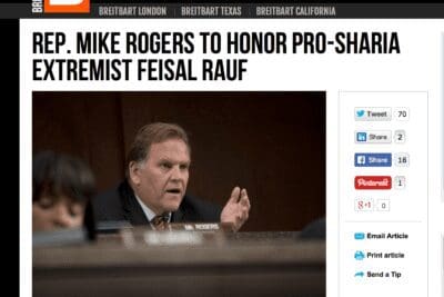 Check out my latest article over at Breitbart here: “Rep. Mike Rogers to Honor Pro-Sharia Extremist Feisal Rauf,” Pamela Geller, Breitbart, May 28, 2014 Rep. Mike Rogers (R-MI) is slated to be the keynote speaker at an event honoring the notorious Ground Zero Mosque imam Feisal Abdul Rauf and his wife Daisy Khan. Rauf and…