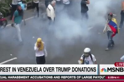Rachel Maddow opened her Thursday night broadcast by blaming the violent riots in Venezuela on President Trump.